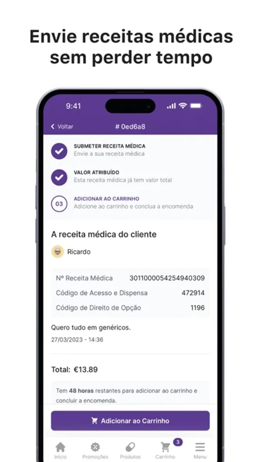 • Aviar as suas receitas médicas de forma simples e eficaz;
