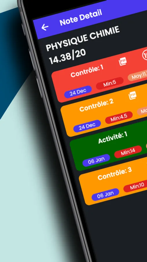 L'application mobile offre une interface simple et intuitive pour faciliter l'interaction entre l'école et les élèves ainsi que leurs parents. Elle permet aux élèves de consulter leurs horaires de cours, et les notes obtenues, tandis que les parents peuvent suivre l'évolution scolaire de leur enfant