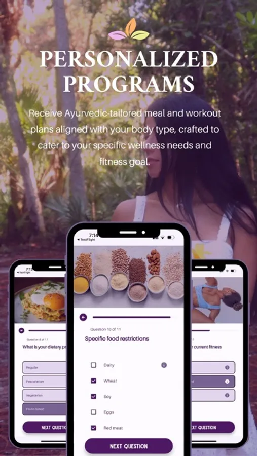 • Get access to our Free Program: 7-day Ayurvedic meal and workout plans for your body type.