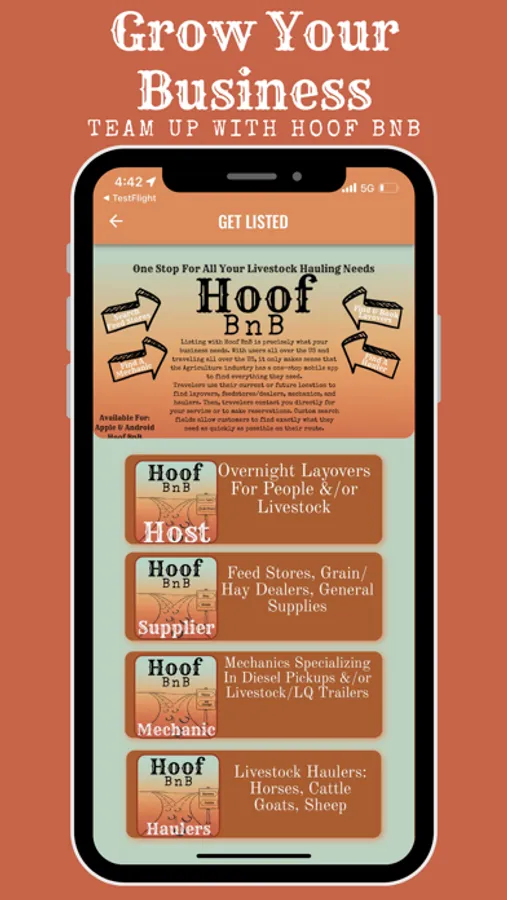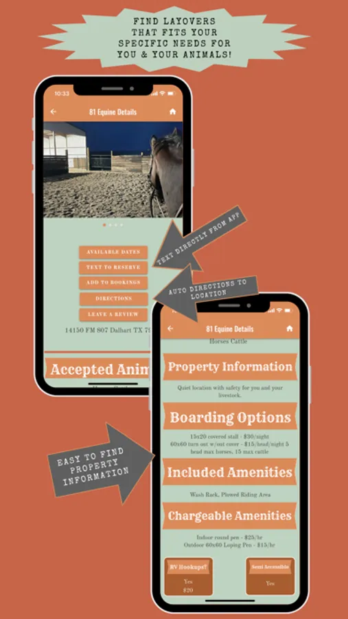 Travelers can now use current and future locations to quickly find what they need for their livestock companions. Find layovers with livestock facilities, mechanics for your pickup & trailer, and suppliers that carry that specific feed or equipment needed in one simple-to-use mobile app!