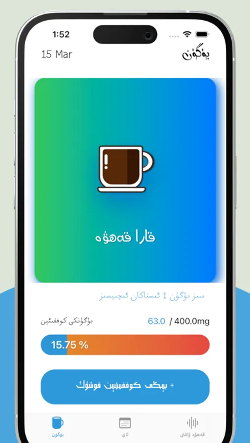 بۇ ئەپ دەل شۇ سەۋەبدىن ياسالغان بولۇپ كۈندە قەھۋە ئىچىۋاتقانلار مۇشۇنىڭغا قاراپ كونترول قىلسا ياكى قانچىلىك ئىچىۋاتقانلىقىنى خاتىرلەپ ماڭسا سىزگە پايدىسى بولۇشى مۇمكىن.