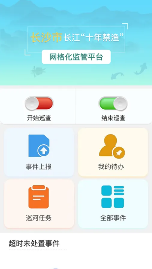 智慧渔政网格化监信息化平台中包含巡河出勤、事件上报、事件交办、设备预警、设备研判、网格地图等功能。
