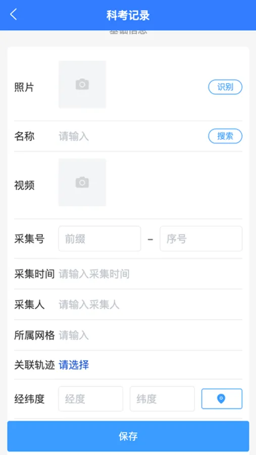 “e科考APP”是GIS、计算机科学、地理空间数据库等技术同科考有机结合的产物。空间性是“e科考APP”的核心特点,它将青藏高原根据科考需求分为多个网格尺度,通过有目的性的科考任务不断完善网格调查数据,每一条记录数据都将作为一条空间信息数据与对应网格绑定,同一网格编号数据将不断地得到完善和更新。此外,高效便捷是“e科考APP”的主要特点,“e科考APP”利用计算机技术优化科考记录流程,从而使科考更加便捷和高效。