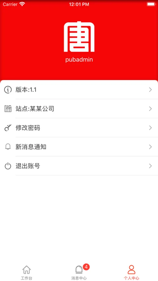 【个人中心】查看版本号,站点名称,修改密码,通知管理,退出登录等