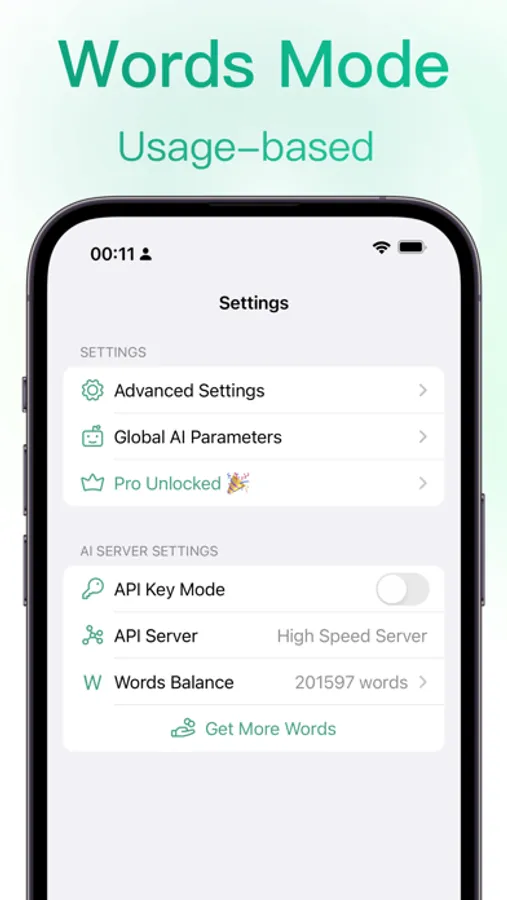- Words Mode: Spend only for what you use, never waste a word