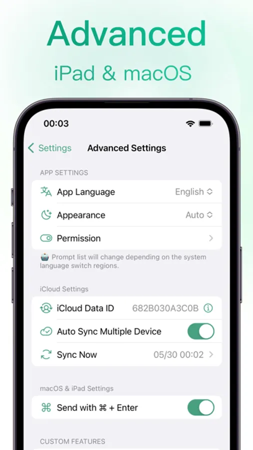 - iCloud Multi-device Auto Sync: Sync your chat lists and settings