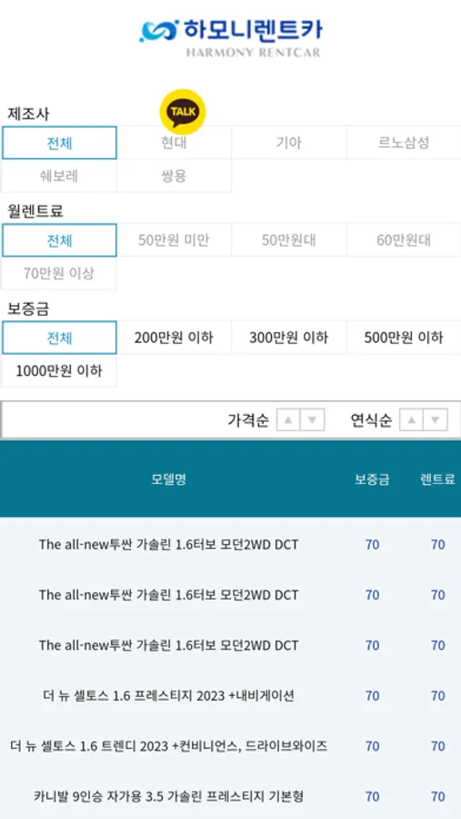 하모니렌트카에서 보유한 8,000대 이상의 차량 중