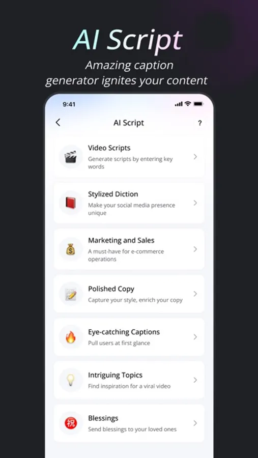 AI Script: Allow your message to inspire! Just enter a few keywords and AI will provide topics, captions, scripts and more for your unique social platform presence!