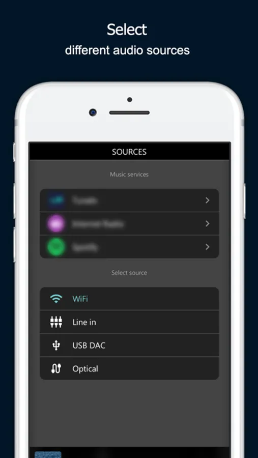 • Manage sources between Online, Line in, USB DAC and Optical.