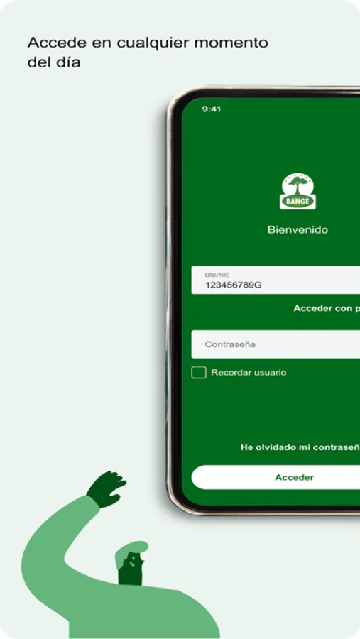 Acceso: Para poder acceder a tu App solo necesitas introducir tu DNI/NIE y contraseña. Y para que el acceso sea con la mayor seguridad, podrás hacerlo con la huella digital o reconocimiento facial.