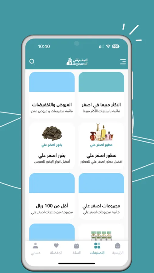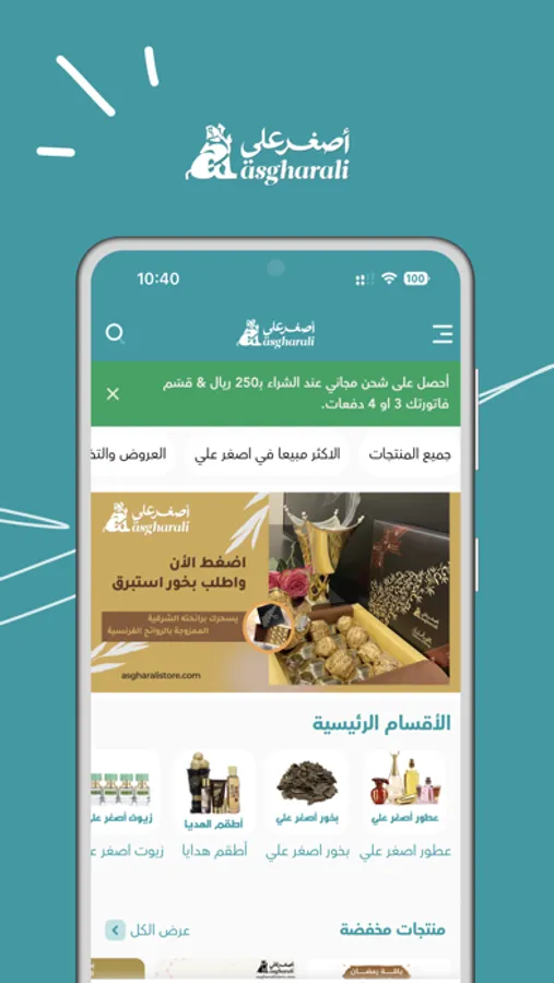 اصغر علي تاريخ يمتد الى 100 عام في صناعة العطور والبخور فقد وفرنا اكثر من 400 منتج متنوعة من العطور والبخور والعوده الطبيعية ومنتجات العناية بالجسم والشعر ودهن العود والزيوت الطبيعية التي تدخل في صناعة العطور والبخور.