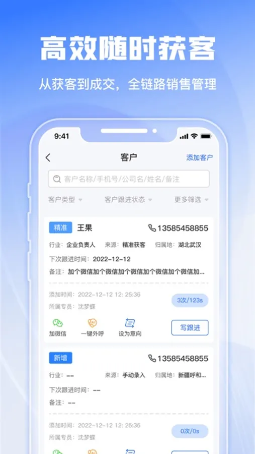 客户管理:漏斗式客户管理,持续推动意向与成交客户