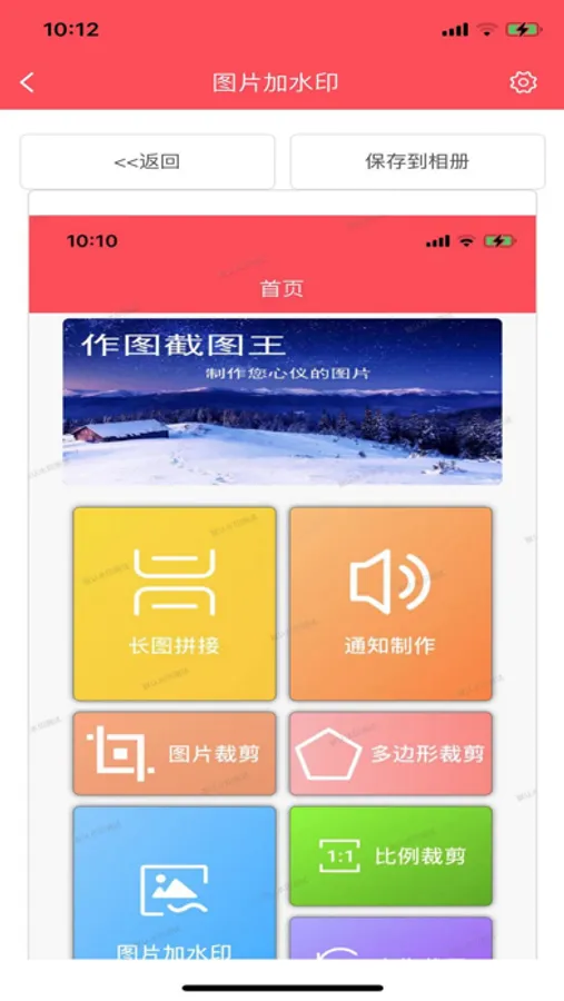 作图截图王是一款深受大家喜爱的截屏、截图、及图片处理软件,能够支持图片裁剪,图片加水印,长图拼接,通知栏制作等多项功能。用户可以对图片自由进行裁剪修改等操作,如可以为自己的图片添加防盗水印,或者裁切旋转图片修改出自己想要的样式。