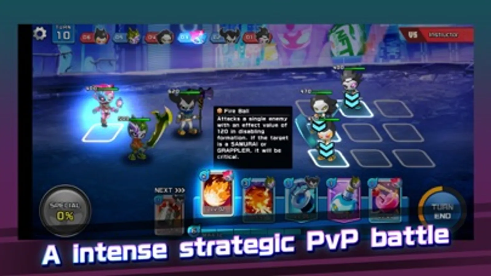 Attack your opponent's weak points instantly and precisely, and use your skill cards and special skills to win!