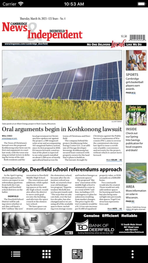 Cambridge News & Deerfield Independent is located in Cambridge and Deerfield, Wisconsin and serves Dane county. It is published on Thursday each week. Cambridge News & Deerfield Independent is owned by Adams Publishing. Contact Cambridge News & Deerfield Independent at print.subscriptions@ecpc.com or call 608-764-0299, press #1.