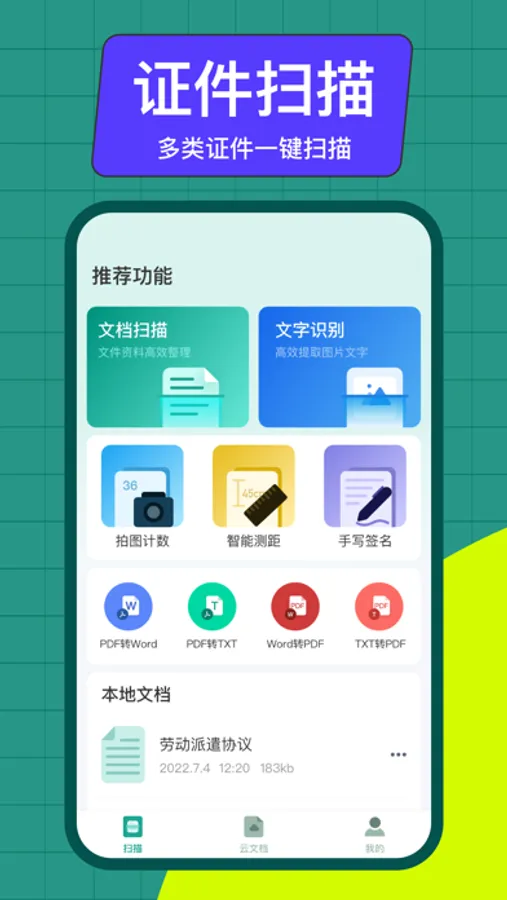 智能扫描助手是一款便携式手机扫描仪,该应用目前包含以下功能: