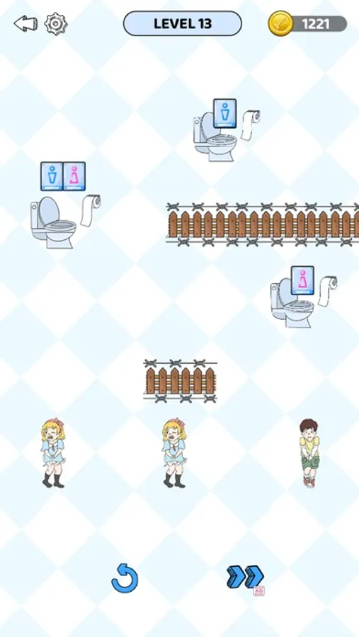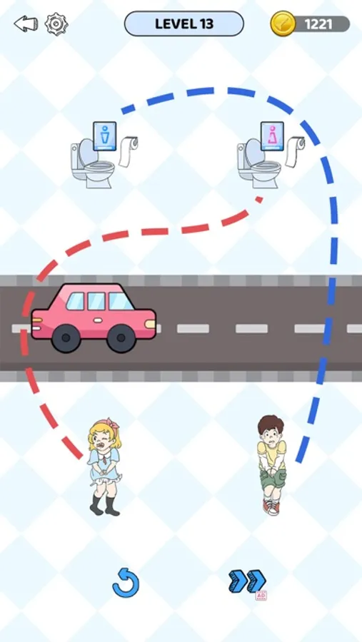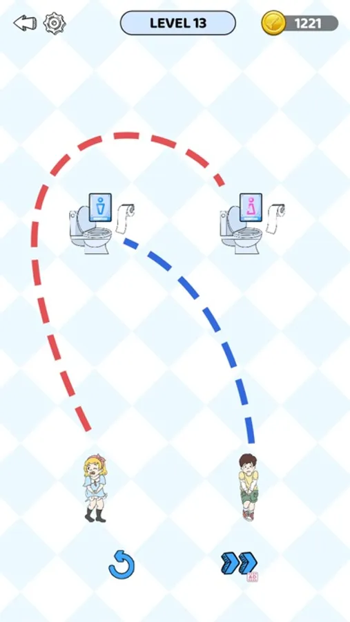 Your task is to draw a line connecting the villain to the toilet, help them find their way to the toilet, and challenge how fast you can help him/her relieve stress!