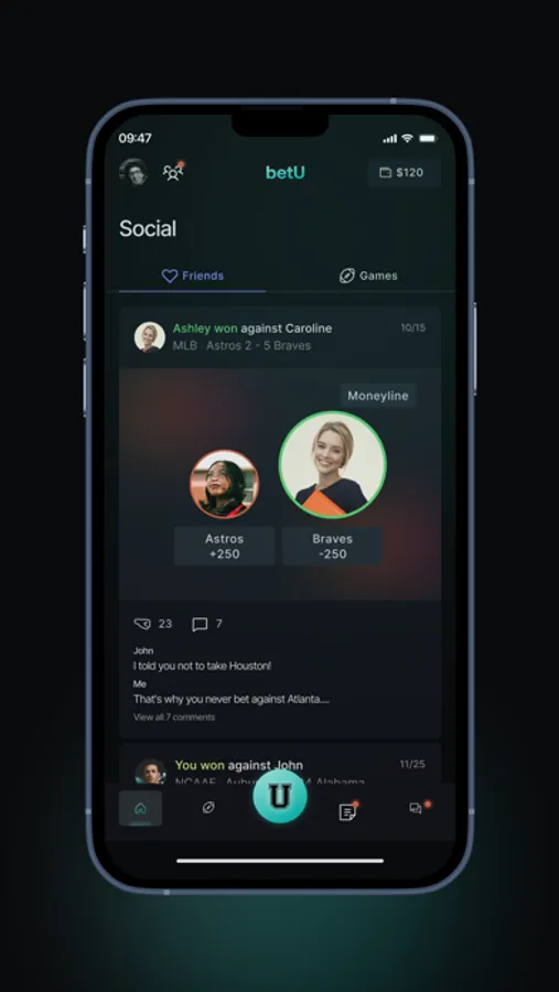 With betU, we know that betting on sports doesn’t just start and stop with placing a wager…. That’s why we’ve added tons of social features to bring the conversation with your friends directly into the bets you make with them: