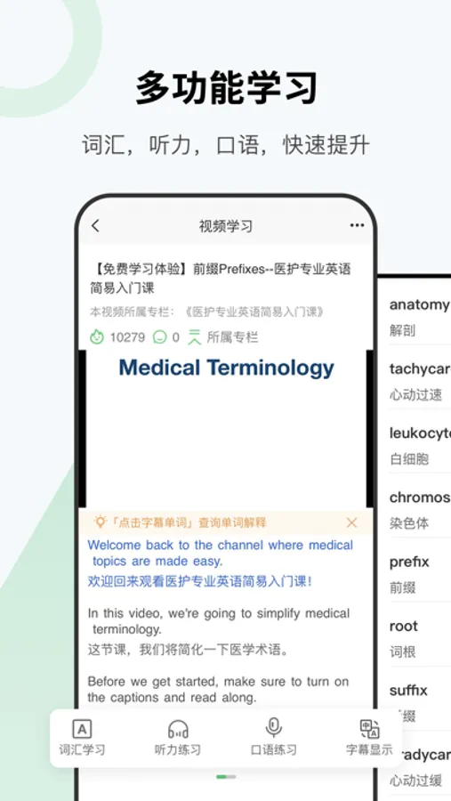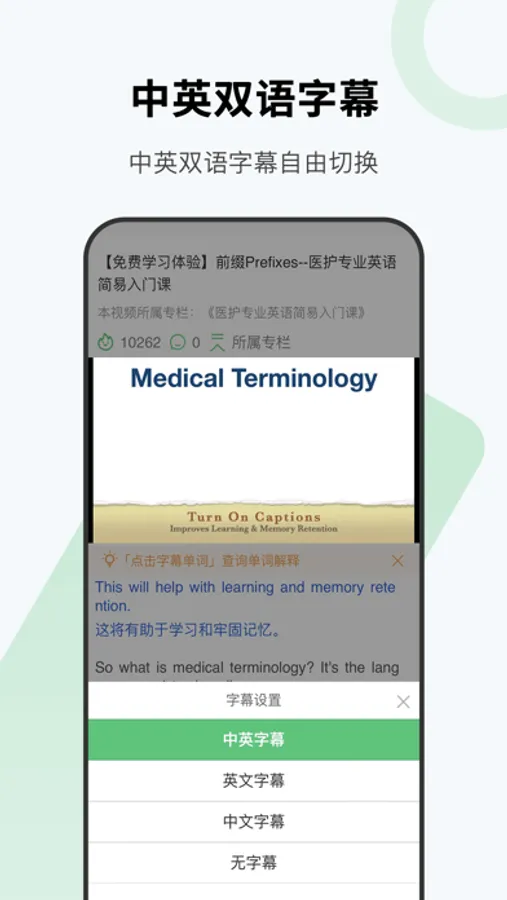 【中英双语字幕】中英双语字幕自由切换,提供可靠的医学双语字幕学习,专业的翻译,系统了解医学背景与内容,提升专业背景,扩充医学专业知识储备量。