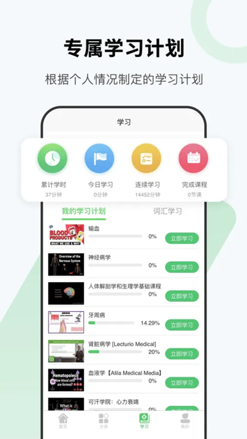 【海量医学双语视频】平台通过智能推荐系统,分析你的专业兴趣提升方向,推荐适合你学习的内容