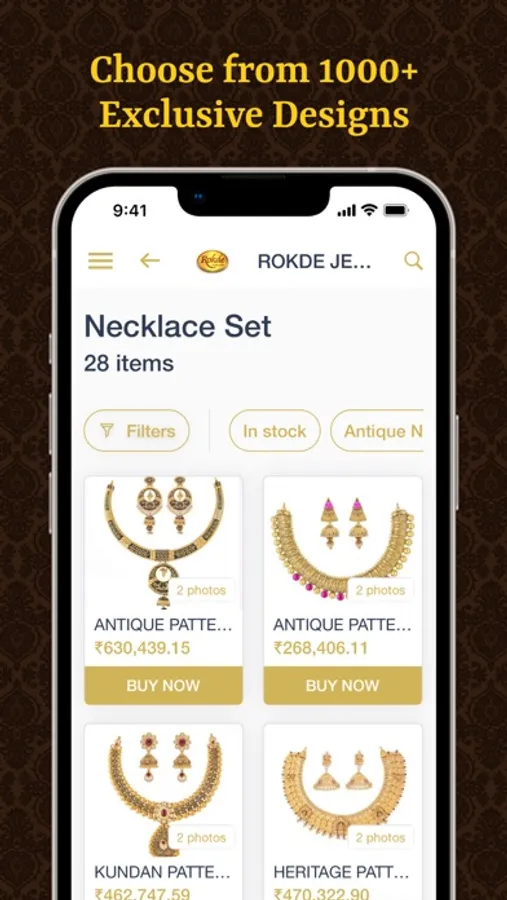 In the ROKDE JEWELLERS app, you can browse and shop through an exclusive collection of