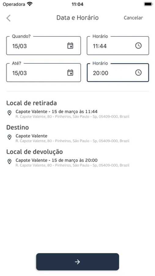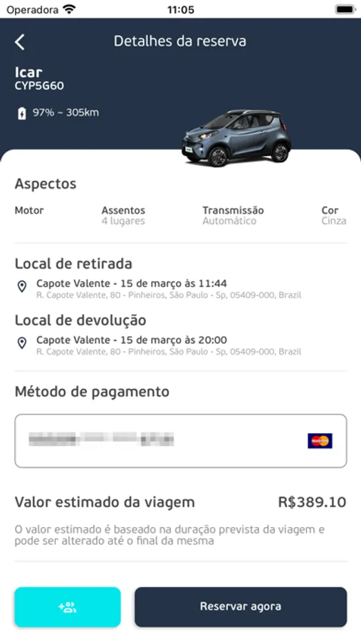 Depois que seu cadastro for aprovado, é muito simples usar o app: basta indicar o local, data e hora de retirada e devolução, selecionar o veículo disponível e pronto, sua reserva estará realizada. No momento de retirada e devolução do veículo é muito importante que você esteja com sinal no seu celular e com acesso à internet, pois a validação da reserva e a comunicação com o veículo utiliza estes recursos.