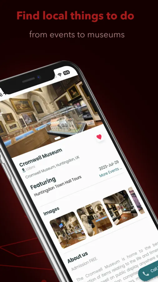 Inside the app you will find a section on local business and a section on local events