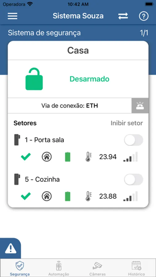 - Realizar ações de segurança como: Arme, Desarme e Arme Interno (Stay) remotamente