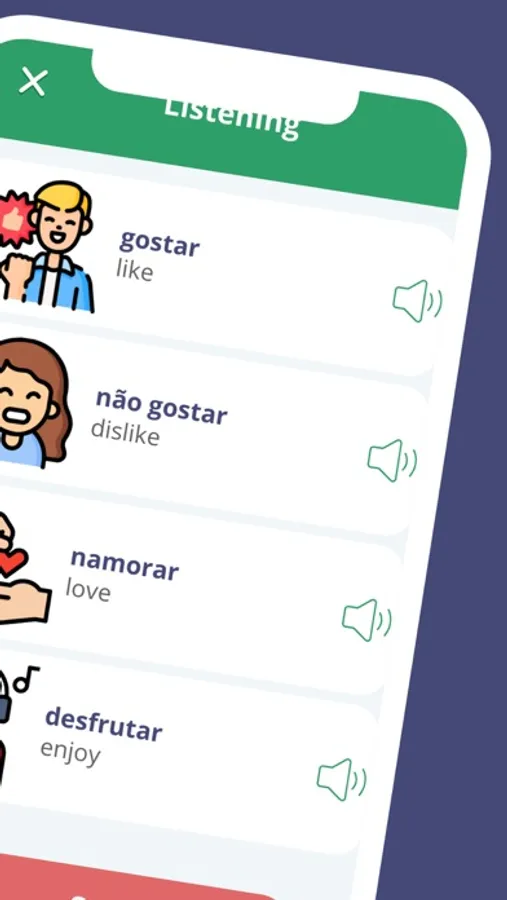 Study Portuguese words in the app Portuguese for Beginners A1 Level. Studying Portuguese has never been so easy and simple!