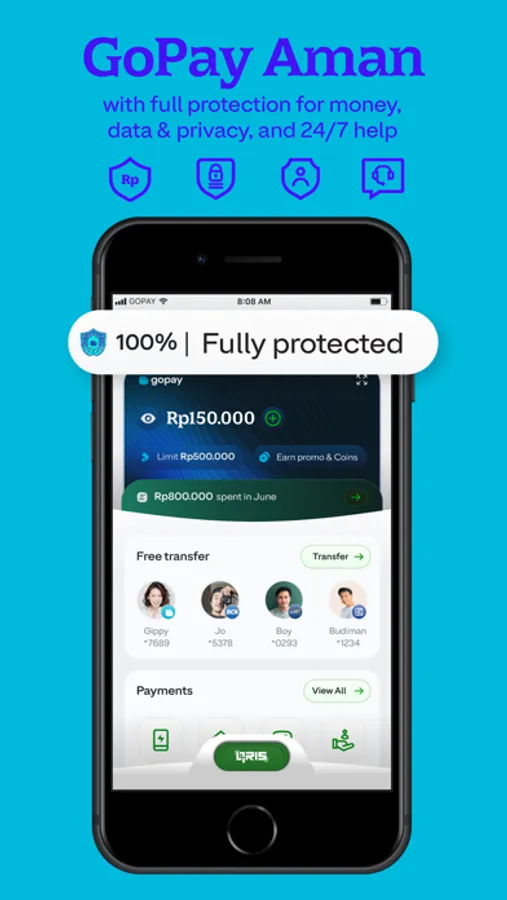 Light app to transfer anywhere, buy pulsa, pay bills, QRIS and many more.
