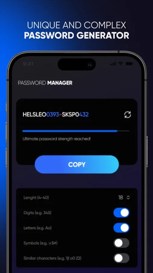 With SafePass you can quickly and easily create complex and secure passwords for various websites, accounts and applications. The app allows you to create an unlimited number of passwords with a variety of personalized settings.