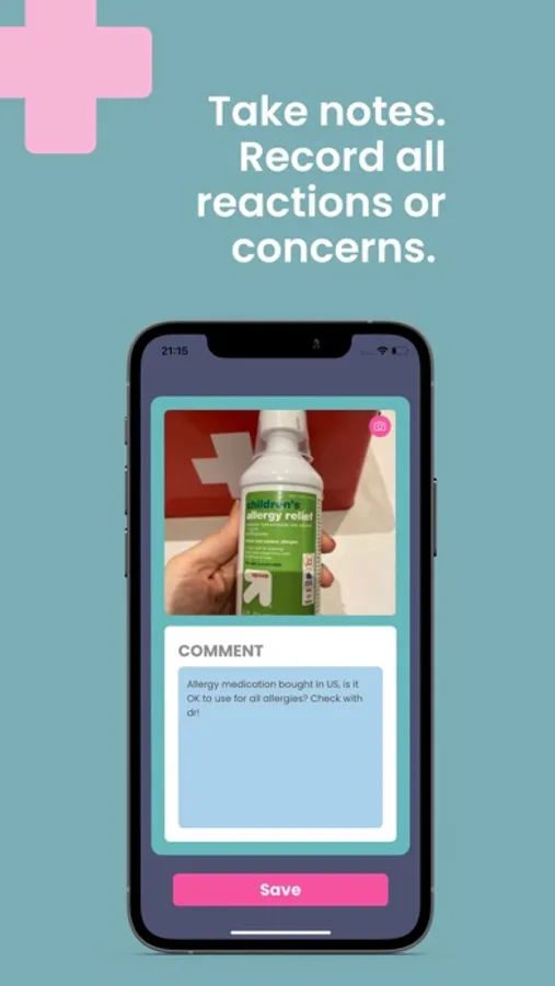 + Use notes to ensure you don’t take medication you’ve previously had an allergic reaction to
