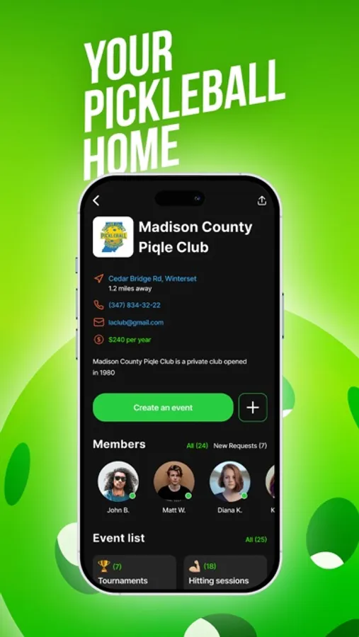 Once you create your own pickleball club in the app you will be able to also create your own tournaments and broadcast them to the whole community. You will be able to manage the tournament schedule and communicate with your club members, setting up matches and looking for new club members.