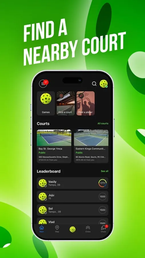Once you gain access to the community you can improve your skills by finding an opponent at your suitable level - for this we have developed our own unique ranking system. You can find, book and pay for a pickleball court or find a professional coach, play a ranked or a practice match, join a club or compete - all within a few clicks.