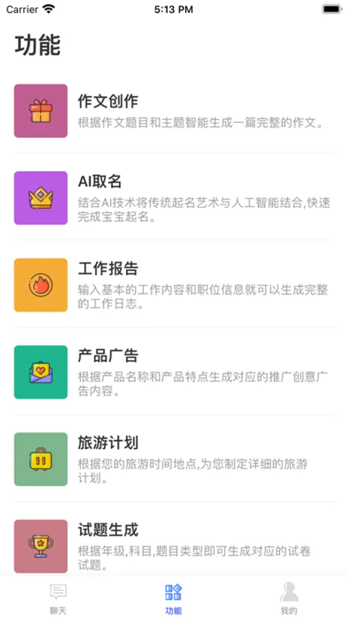除了写作功能,该应用程序还拥有智能聊天等其他功能,能够实现与用户的真实对话,自动回答问题,提供各种有用的信息和建议。为您省去了寻找答案和询问其他人的麻烦。