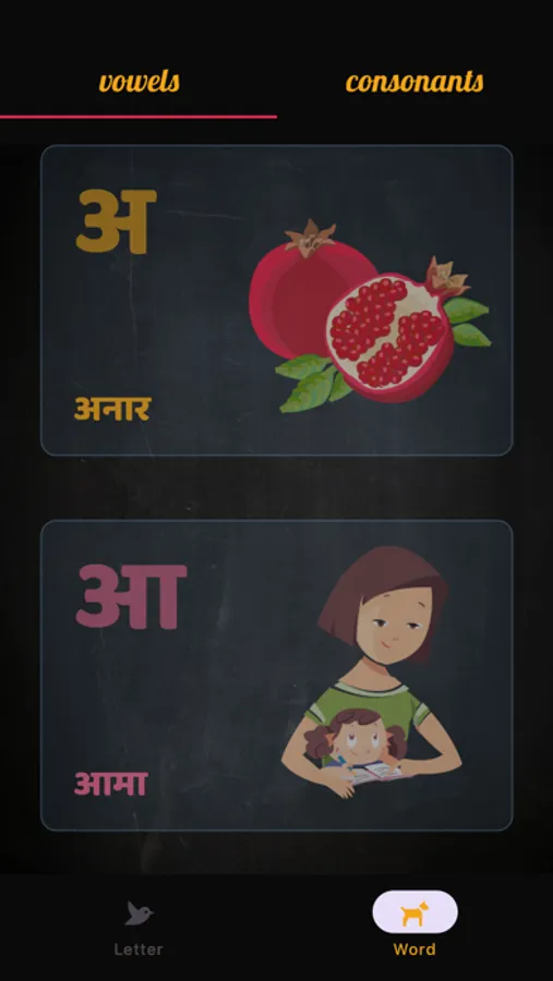 Nepali children usually learn barnamala at schools (Skula) and private tuitions. But children have a concise attention span, and the traditional way of learning is tedious and inefficient. This is why we have made our app child-friendly and interactive.