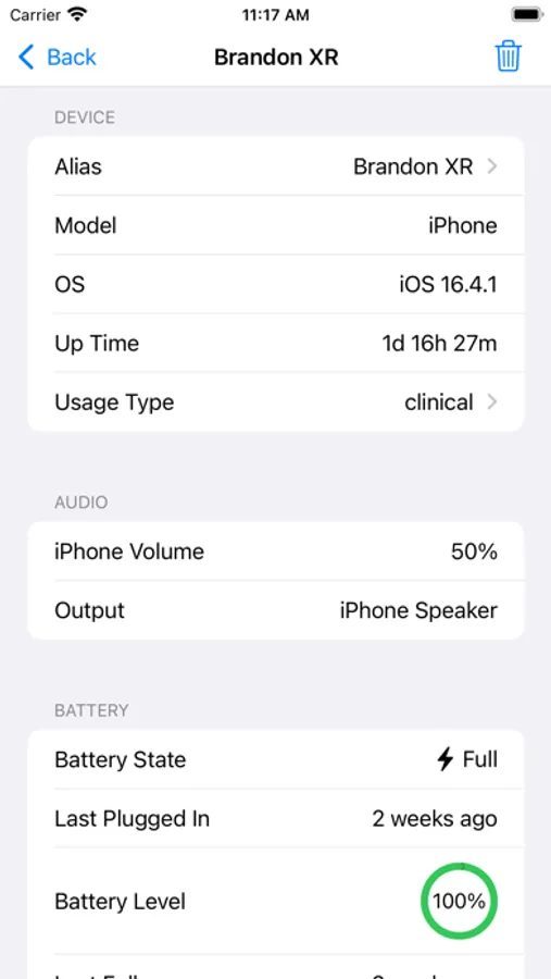 • Easily check the iOS version and speaker configuration with output volume of any managed device.