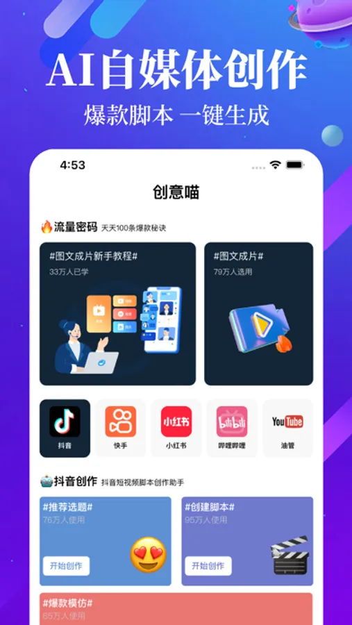 现在就下载创意喵,开启您的智能创作之旅!让人工智能成为您在自媒体世界的得力助手,助您创作出更具吸引力的作品。