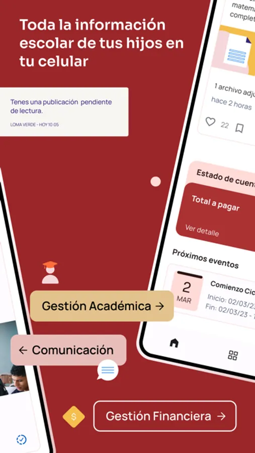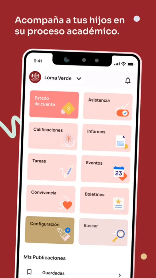Acompaña la trayectoria escolar de los estudiantes con la app de Loma Verde. Su sistema operativo mejora la comunicación en tiempo real con la comunidad, y facilita la gestión académica de todos los alumnos.