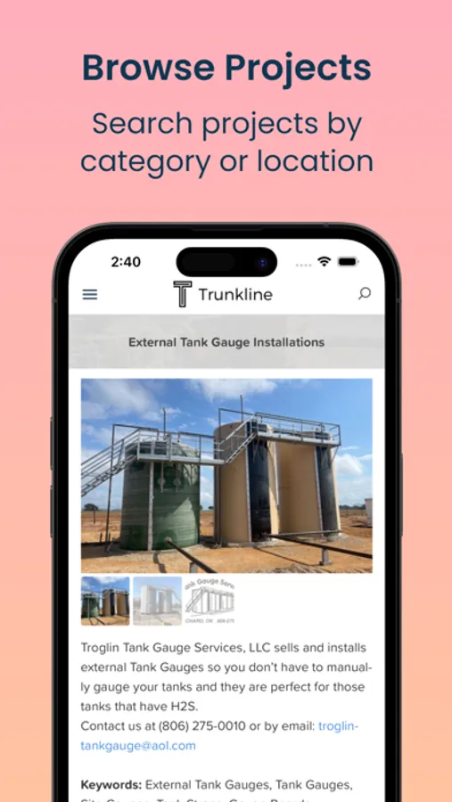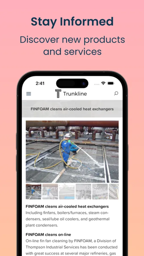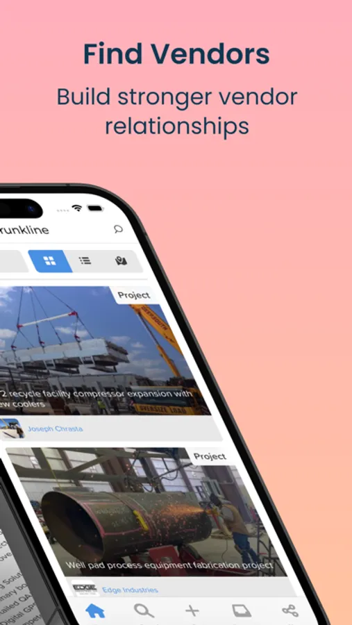 Use Trunkline for iOS to showcase your work, attract new customers, find experienced vendors, and hire qualified employees in the industrial sector.