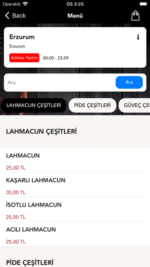 * Menümüzü inceleyin.
