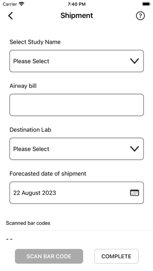 Shipment: The aim of this process is to scan samples that will be part of one shipment.