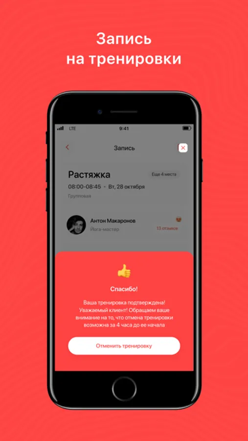 Получать PUSH-уведомления о предстоящей тренировке за 3 часа;