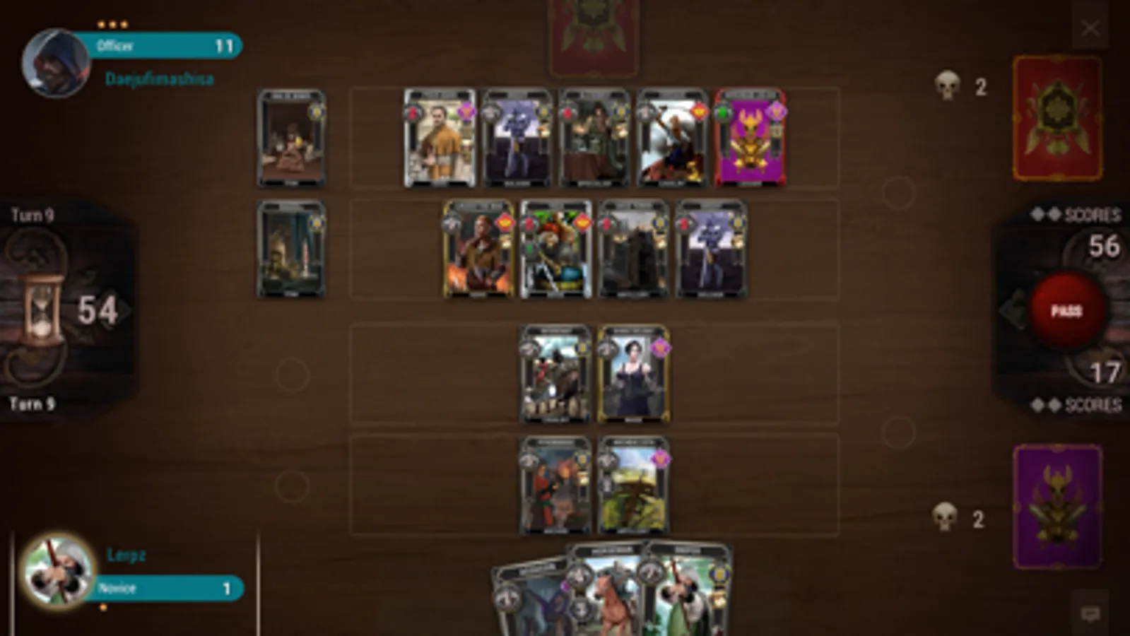 The battle between factions is made in the form of a card duel. Only the player who can competently gather his troops and take advantage of random cards will be able to emerge victorious in a duel. The outcome depends only on the tactical abilities of the player.