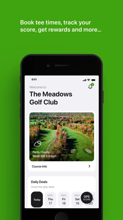 Get The Meadows Golf Club app to conveniently reserve your tee times, use GPS, track your score, and view our course social feed. Booking is fast and easy with just 3-taps. Look up your reservations at any time or view and redeem your rewards or promotion codes.