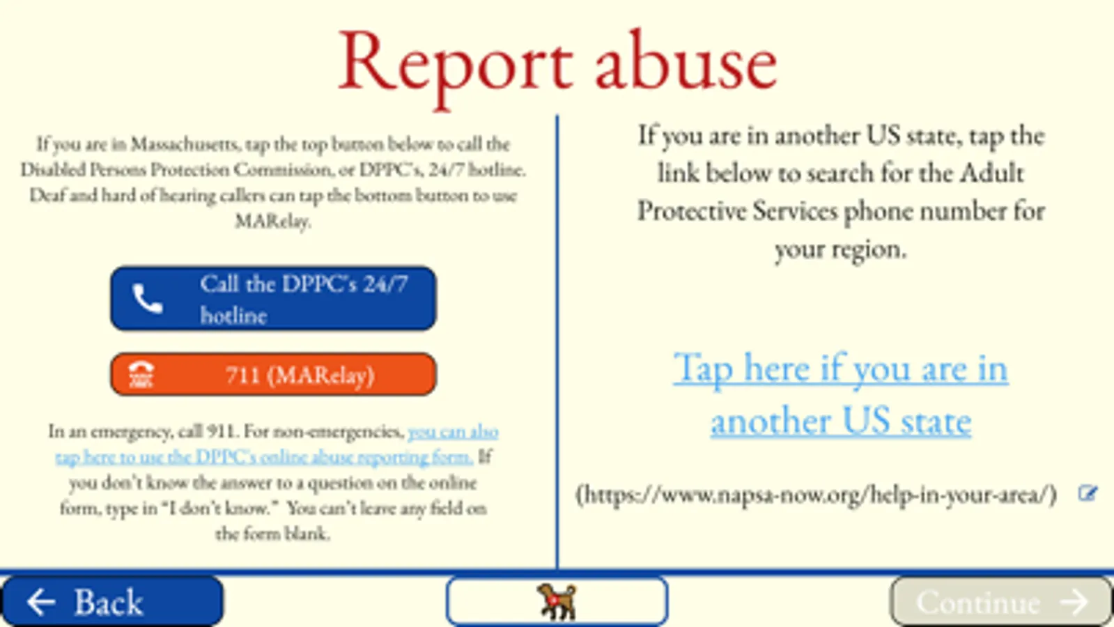 R3 was designed and developed by the ASSET Lab at the University of Rhode Island (https://kven.me/asset) for the Massachusetts Disabled Persons Protection Commission (DPPC) in close collaboration with people with intellectual, developmental, and other types of disabilities. The R3 app is based on a curriculum called Awareness and Action (A&A). The A&A training was developed by the Building Partnerships for the Protection of Persons with Disabilities Initiative with many other stakeholders, including DPPC, persons with disabilities, instructional designers, and service-providing agencies. It is an in-person curriculum that is team-taught by people with and without disabilities. The A&A training educates persons with disabilities as well as others on recognizing, reporting, and responding to common types of abuse. For more information about the A&A training, visit www.wearemass.org.