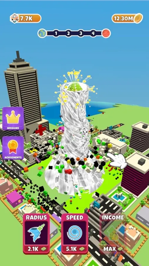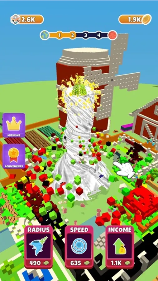 Tap fast to increase your tornado's size & abilities and FIRE it UP.