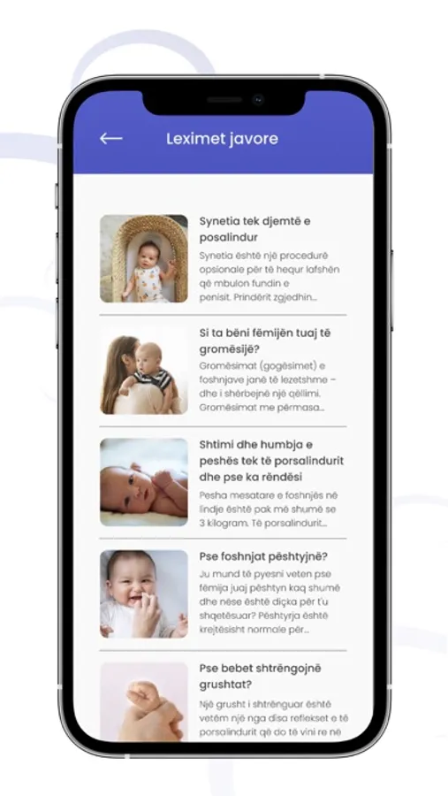 • Përmbajtje informuese: Qasuni qindra artikujve edukues dhe të përditësuar mbi shtatzëninë dhe prindërimin.