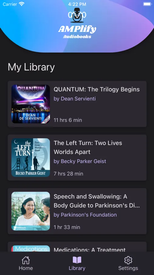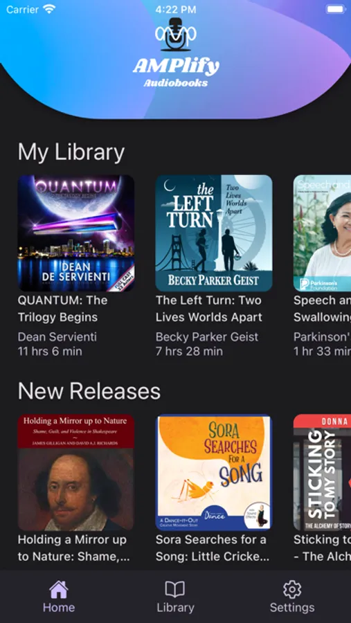 The AMPlify Audiobooks app is a platform for listening to audiobooks direct from the author-creators.