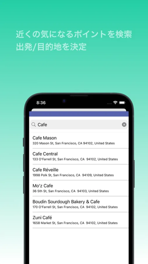 将来的なアップデートでは、目的地に向かう途中で、立ち寄りたいスポットのキーワードを入力すると、自動で寄り道スポットを提案するようになります。アプリが提供する周辺スポット情報を利用すれば、気になる場所に気軽に立ち寄ることができます。